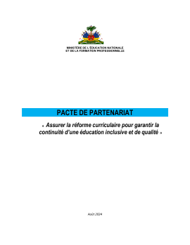 Haiti's Partnership Compact marks the alignment of partners and resources with the national priority to ensure curriculum reform to guarantee the continuity of inclusive and quality education.