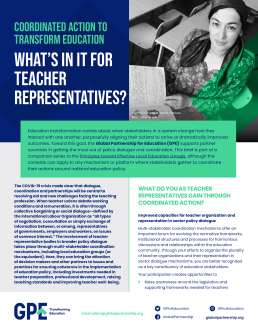 Giving teachers a voice: Teachers and school leaders understand local needs and realities, so GPE encourages them to take part in discussions on education and supports the inclusion of teacher organizations in local education groups.